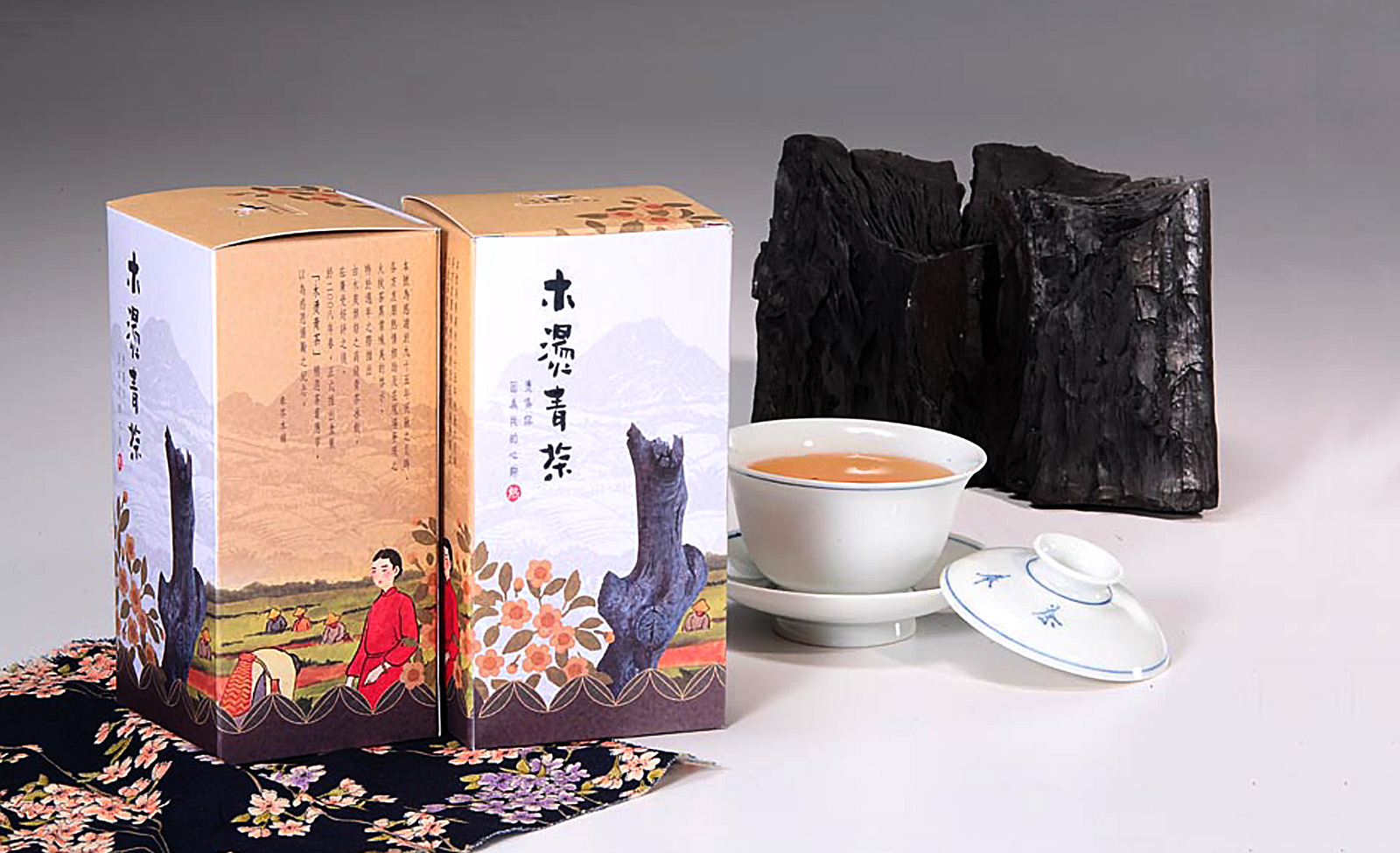 Inspired by its discovery after a fire, Charred Wood Oolong Tea symbolizes resilience and rebirth. The packaging features a burnt tree stump and hand-drawn calligraphy, reflecting the tea’s bold character and deep cultural roots. Warm tones and rustic illustrations evoke Taiwan’s tea-growing heritage, while the roasted aroma captures the essence of transformation — a tea born from the ashes, rich with story in every sip.